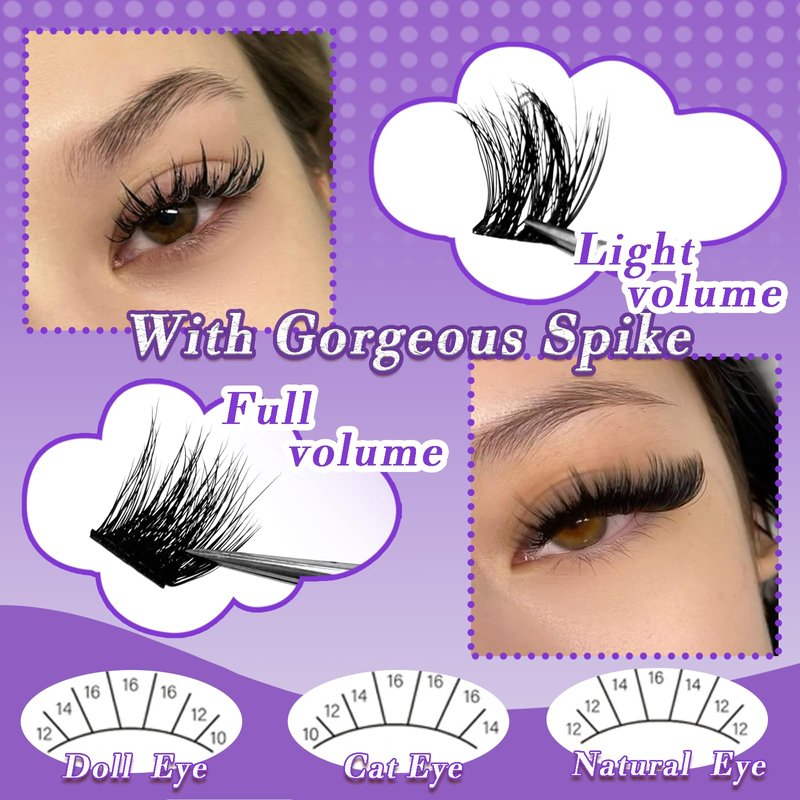 - ♥ 【Fluffy Volume + Everyday lashes】: A brand new style that you have never seen before! The upper part features glamorous spike-clustered eyelashes for a cute anime look, while the lower half offers voluminous blinkers, providing a charming fluffy lash effect. With a variety of options available, you can mix and match to create a custom lash look that highlights your unique beauty!