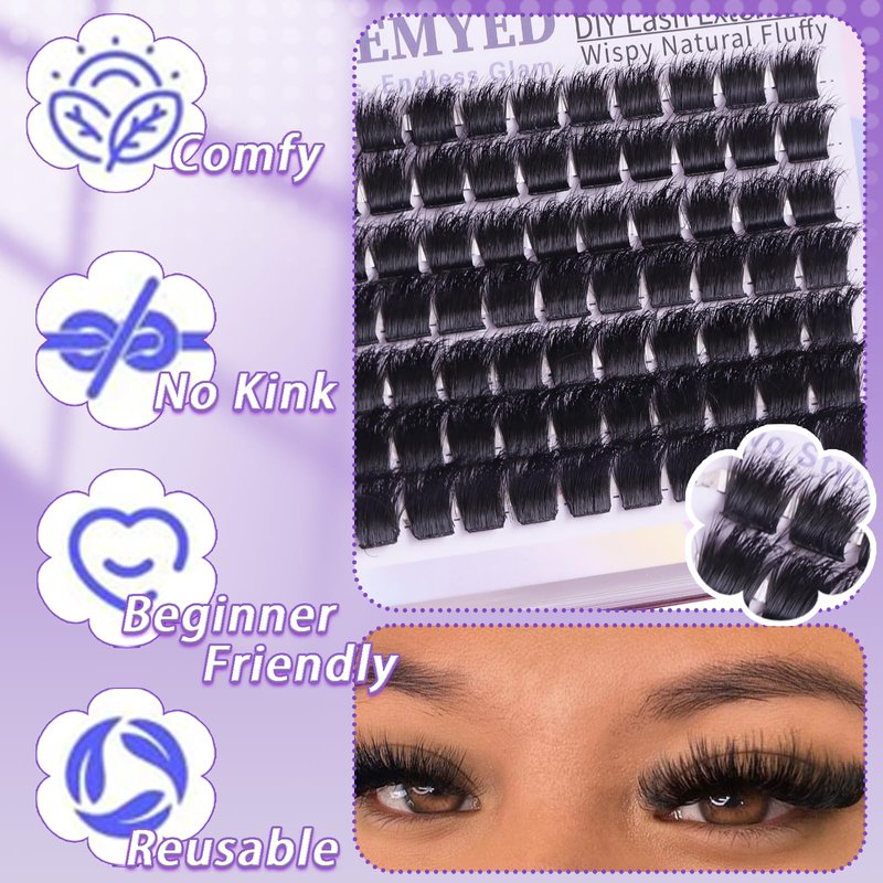- ♥【Designed for Easy Application】: FOINEMYED cluster is designed for easy application and comfortable wear, ensuring your lashes look flawless and feel lightweight all day long. Crafted with a premium lash band, our lash extensions boast longer-lasting wear and can be reused with proper care.