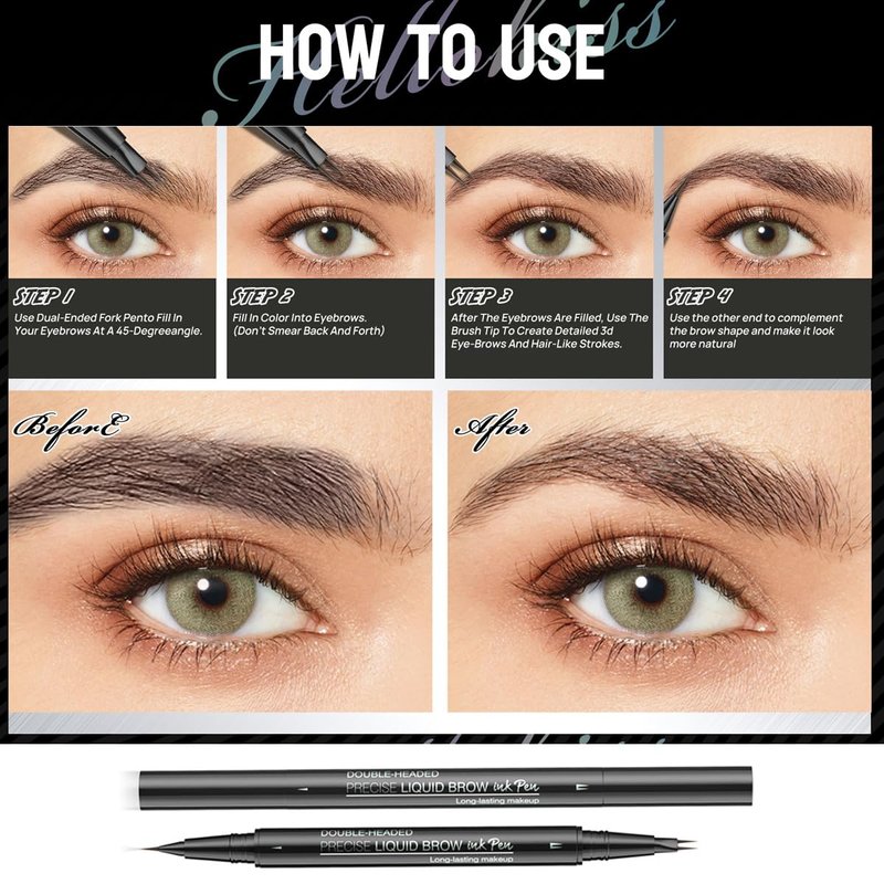 - MAGICAL 2 TIP BROW PEN: This new 2-tip curved brow pen is dual ended, It has precise brush tip to create tiny hair-like stokes for natural finish, curved tip to fill in sparse areas, blend color into brows.