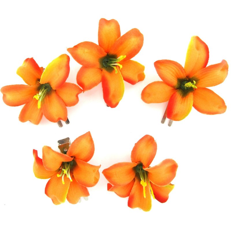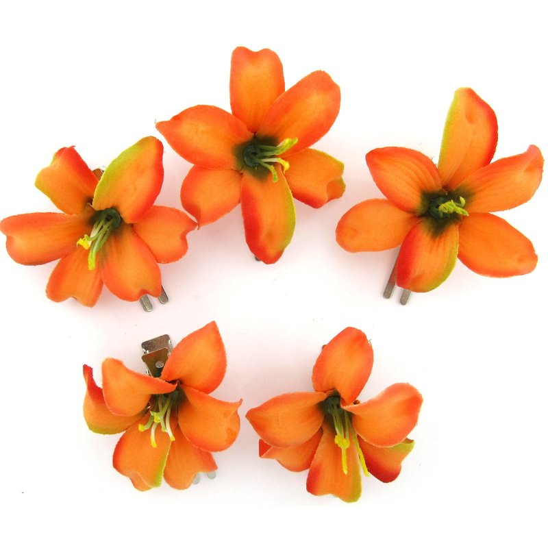 2" Tropical Orange Lily 5 Piece Lot Silk Flower Hair Clips