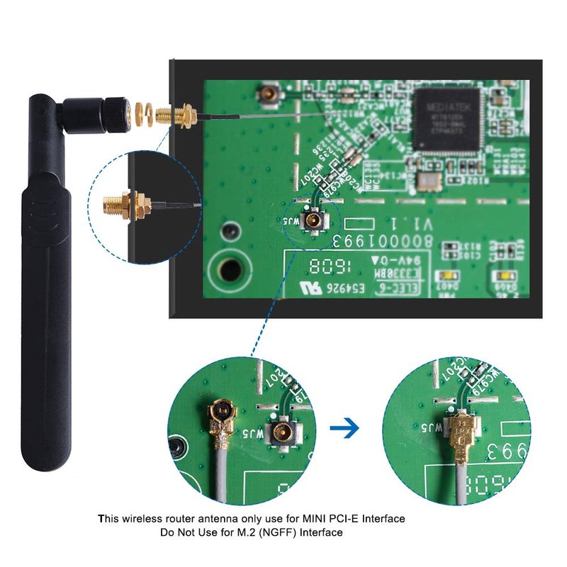 - Multi-use- This wireless antenna works with most wireless devices, such as Mini PCIe Wireless Card Routers / Repeater / Range Extender / Desktop PC / Mini ITX Build / PCI Card / FPV UAV Drone / PS4 Build. WARM NOTICE: this wireless router antenna only use for MINI PCI-E Interface, Do Not Use for M.2 (NGFF) Interface, please check your connectors before buying