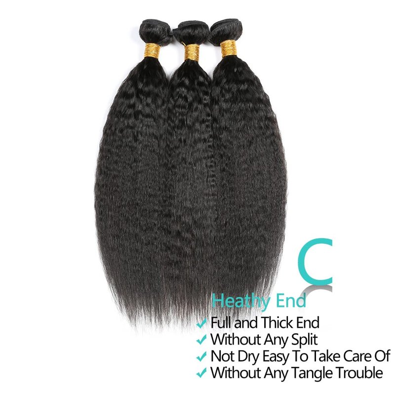 - 4. Kinky Straight Brazilian Hair Bundles Hair Feature: Kinky straight raw bundles human hair is soft, shiny, and easy to manage. It should also be durable and able to withstand styling and washing. The yaki straight texture is nice and soft to the touch, perfectly natural and slightly wavy, comfortable to blends well with your own hair.