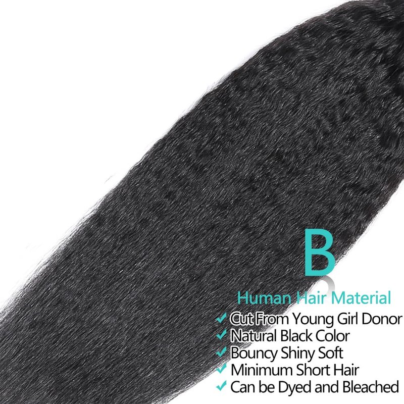 - 3.Yaki Human Hair Bundles Hair Color &Weight &Length: 1B Color Brazilian Bundles,95-105g/bundle,1/ 3/ 4 bundles per order, Multiple Choices,8inch-30inch;For the Length, Please Stretching the Hair to be STRAIGHT and Then Measure.