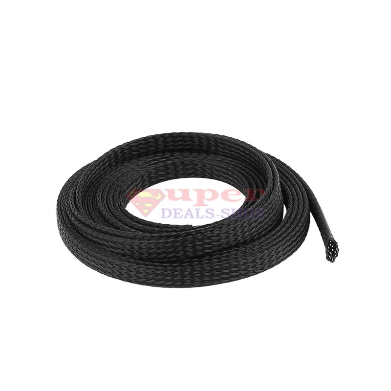 20 FT 1/4" Black Expandable Wire Cable Sleeving Expandable Braided Sleeving Braided Cable Sleeve Expandable Braided Cord Sleeve Cord Managment Super-Deals-Shop