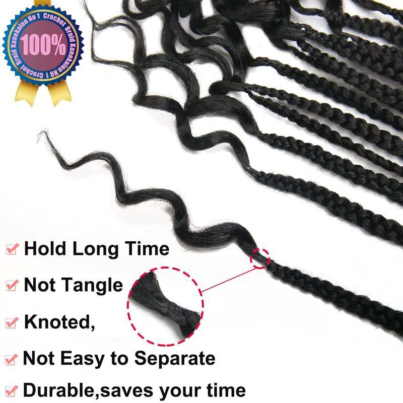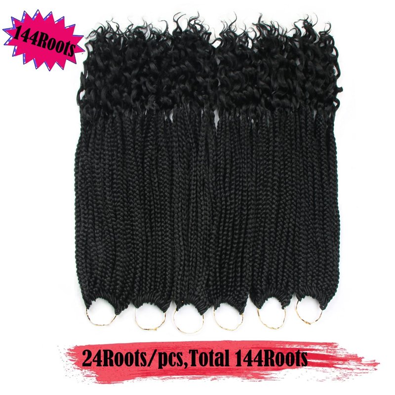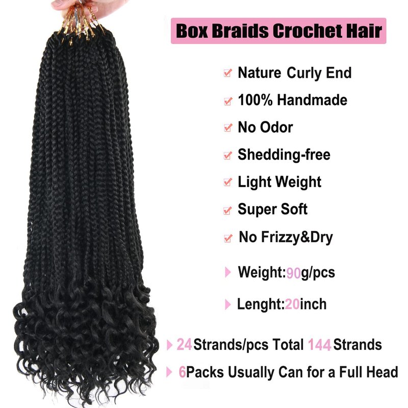 20 Inch 144 Roots/pack Crochet Braids Box Braids Crochet Hair For Women Black Crochet Braid Hair Curly Ends Box Braids Crochet Hair Braiding Hair Extensions 6Packs (20inch, 1B#)