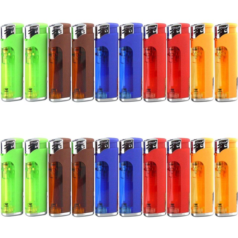 20 Pack Refillable Butane Cigarette Lighter with LED Flashlight
