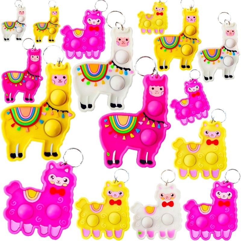 20 Packs Llama Mini Pop Fidget for Birthday Party Favors,Bulk Small Tiny Alpaca Animal Backpack Keychain for Classroom Students Adult Kids