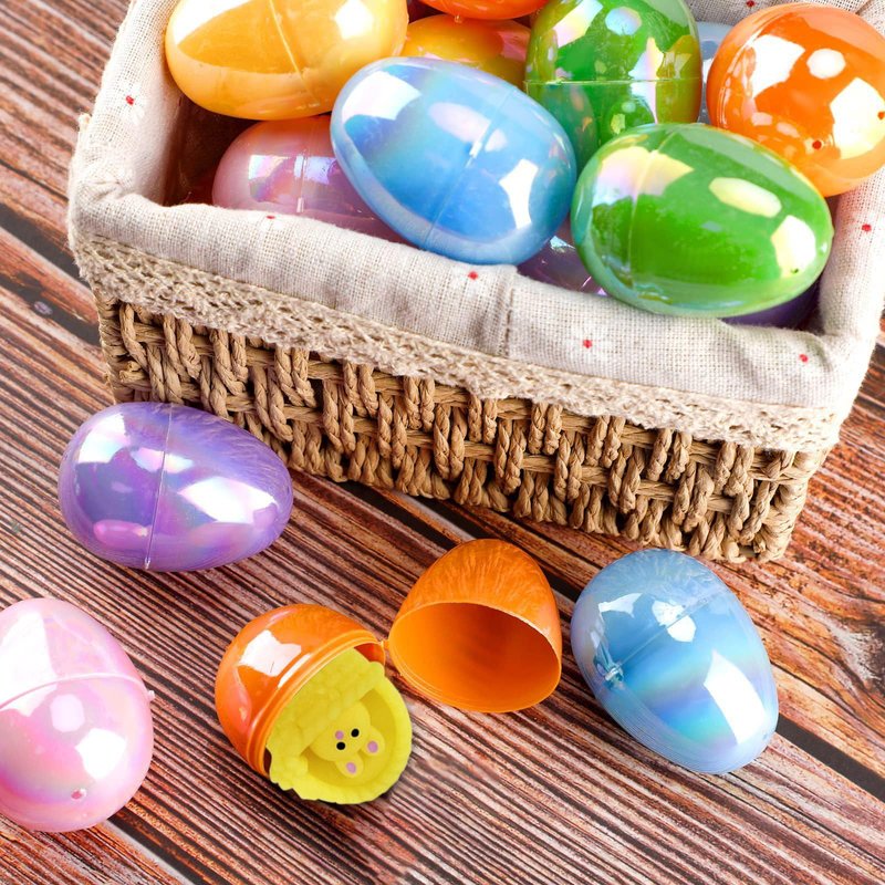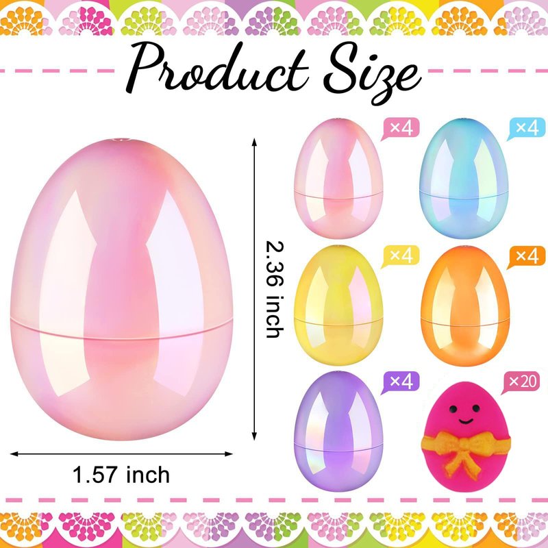 - 💝 High Quality: The Easter eggs are made of high quality plastic and coated with pearl powder to give them a distinctive appearance. The mochi toy is made of high quality and safe TPR material. You can squeeze, lift, twist and stretch, give you endless fun, make you feel relaxed and happy.