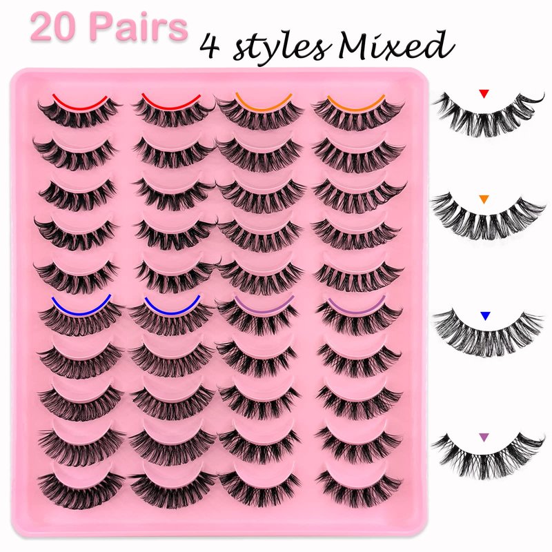 - 20 PAIRS 4 STYLES MIXED: 4 differernt styles mixed russian volume strip Lashes will meet your different needs, professional eyelash extensions look with strip lashes, giving you natural fluffy and glamorous look.