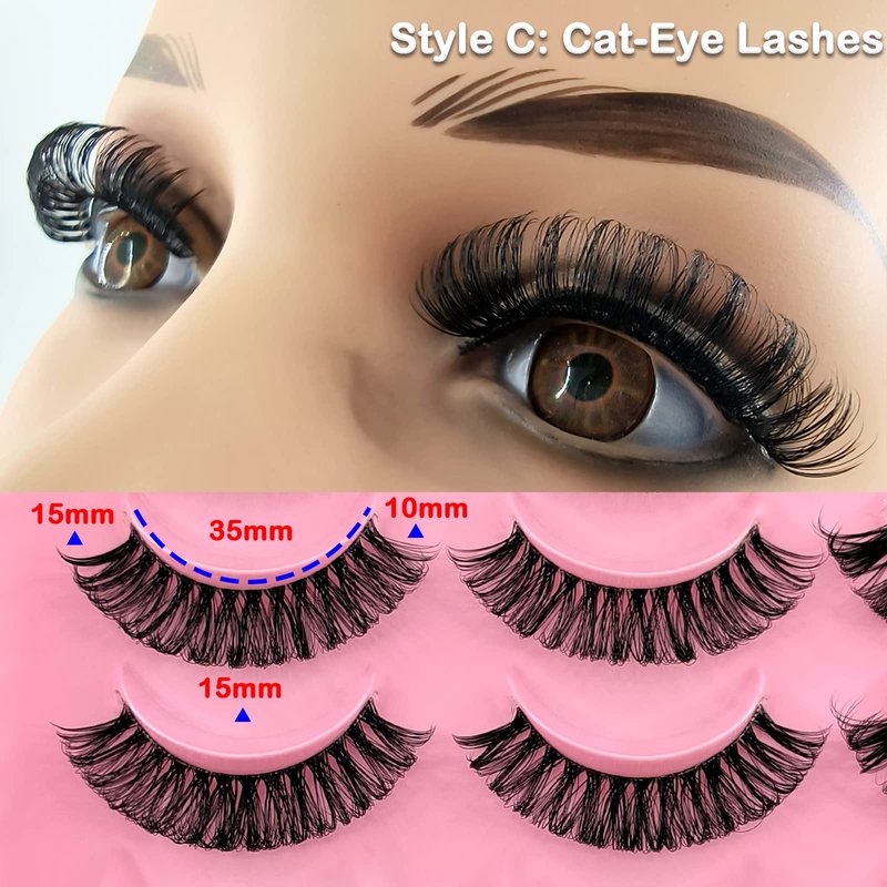 20 Pairs Russian Strip Lashes with Clear Band, D Curl Lash Strips that Looks Like Eyelash Extensions, Cat-Eye Lashes Natural Look Wispy False Eyelashes 4 Styles Volume Curly Lashes Pack by Heracks