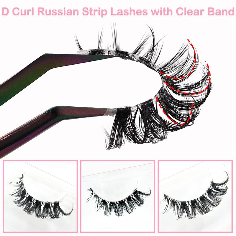 - CLEAR BAND LASHES: Heracks russian strip D curl lashes with new designed soft clear band can fits any color of skin, comfortable and no burden to eyes makeup.
