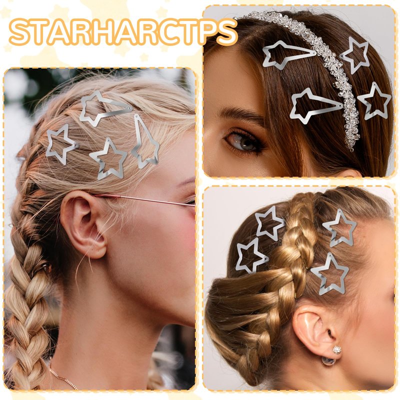 - Multiple Uses: This silver star clips are suitable for all kinds of hairstyles. It can be applied as bangs hair clips, side hair clips, or for ponytails, braids, you can wear y2k hair accessories in various ways, good quality braided hair clips for women to create a trendy