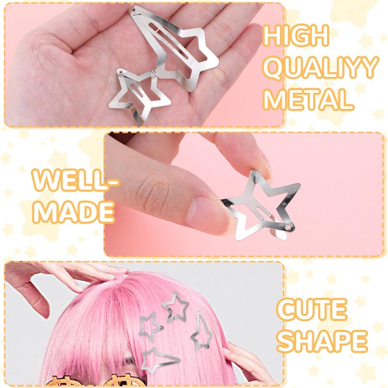 - Easy To Use: The star clips hair are simple to shape, easy to open and close, will not slip off. y2k hair accessories are made of metal but will hurt your hair. y2k hair accessories are made of metal but will not hurt your hair. Mini kawaii star hair clip for women for girls are easy to clip on and take