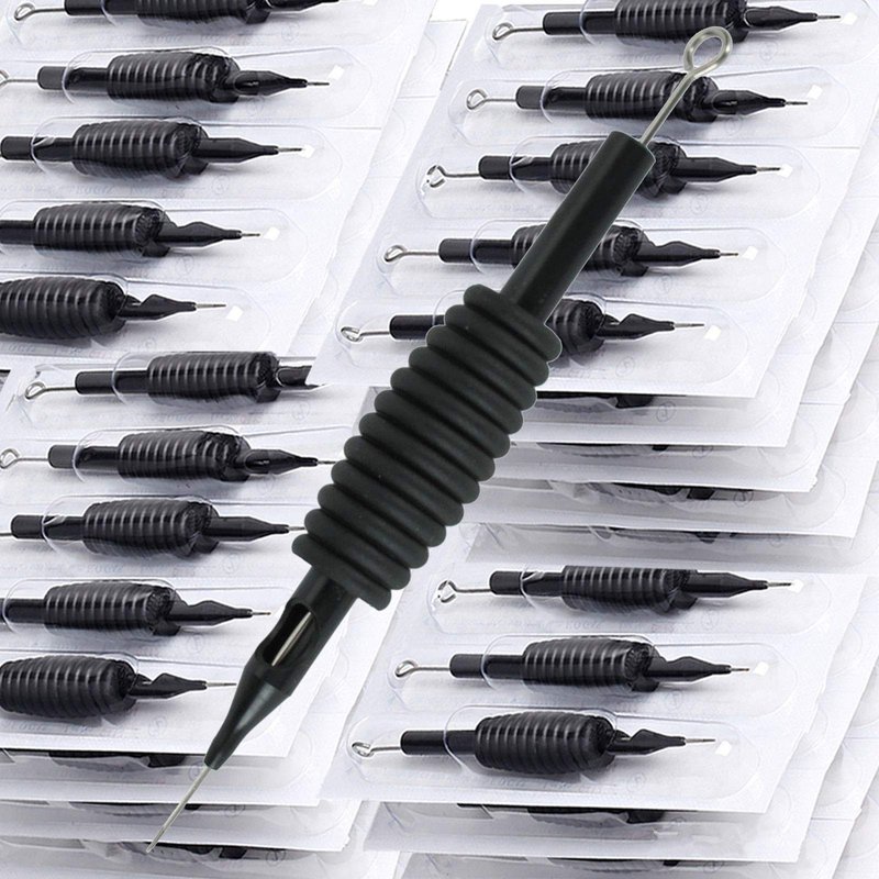- Specialized sterilized disposable tattoo needles with grips and tubes.
