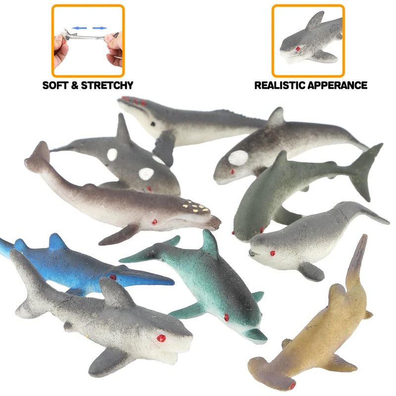 - Small shark Dolphin Whale toys: smelless, Eco-friendly, let children grow up happily and healthily. Includes: Great White,, Whale and More