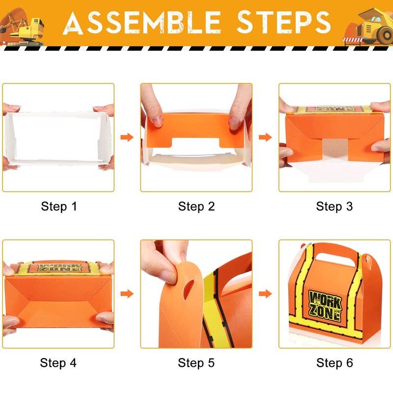 With quality material and clear printing, these construction theme gift boxes are nice party dessert wrappers.