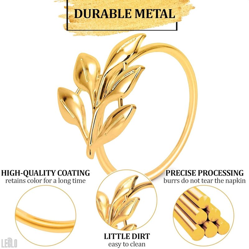 - Easy to Use: This gold dining table napkin holder is very easy to use just fold the cloth napkin as you want and put the leaf ring on it and make your table more descant and well-mannered for any occasion.