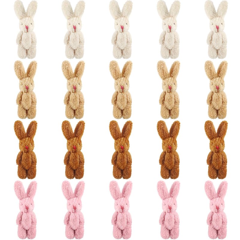 - What you get: comes with 20 pieces of small bunny dolls in 4 colors, ample quantity with different colors could meet your daily decoration requirement, and you can send them as gifts to family and friends; Warm note: due to vacuum compression, the product will have a certain extrusion deformation, but it can be restored to fluffy by kneaded