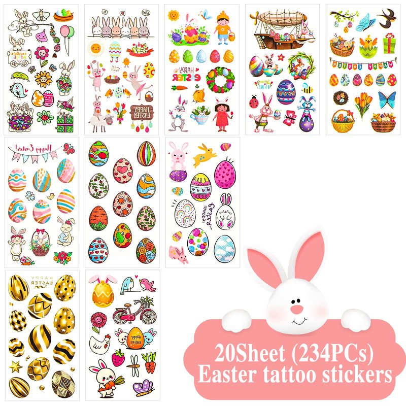 - Lots of variety: Our Easter tattoos have 7 bunny images as well as golden eggs, carrots, bicycles, strawberries, butterflies, flower baskets, birds and many more. Over 200 designs will be great for catching the eye of others at your Easter party.