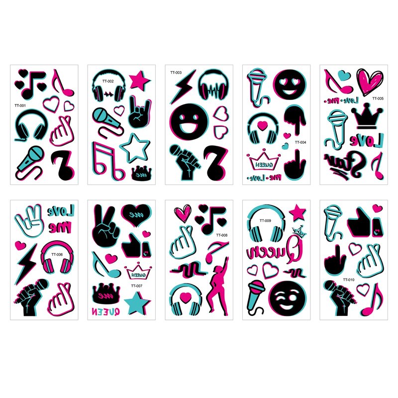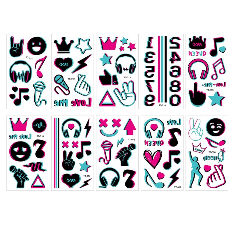 - Package include 20 pcs music theme blacklight tattoos stickers.