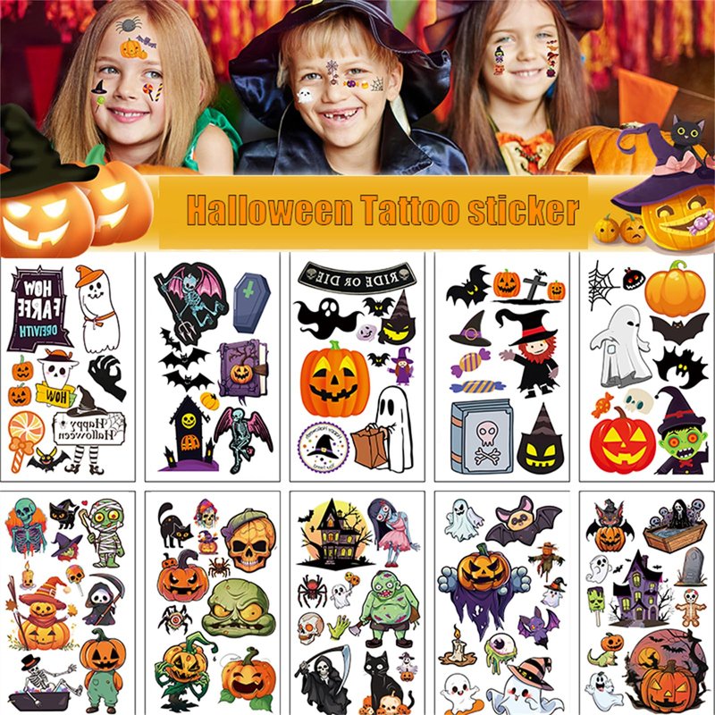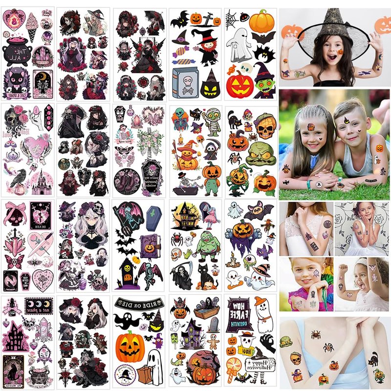 - 【Great Tattoo for Kids and Adult】: Cute Cartoon Halloween Temporary tattoos Stickers, features an assortment of themed characters, colors are bright, and designs are adorable, use them as party favors and your kids will love. Perfect for themed party, Halloween,Thanksgiving Day, Christmas New Year's Day, Children's Day ,birthday activities, school reward and other party events. They will be your kids' favorite small gifts.