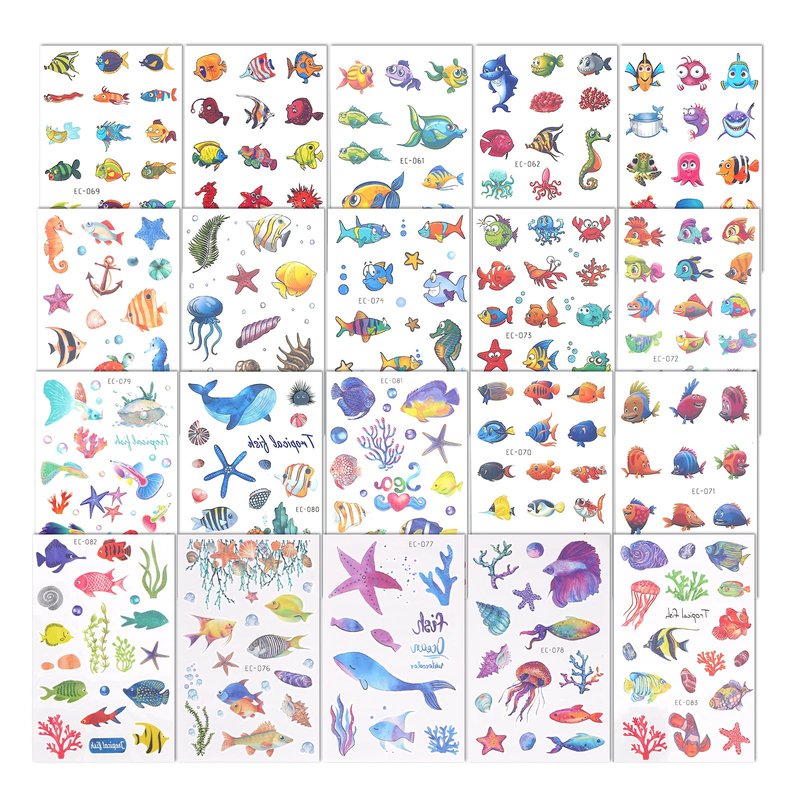 20 sheets ocean creature temporary tattoos