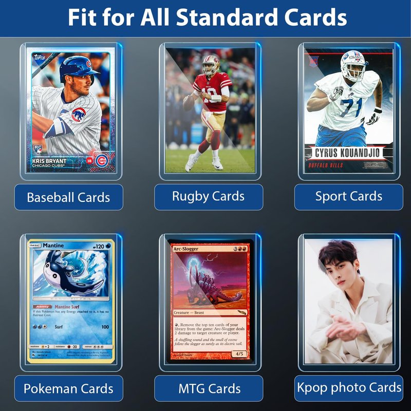- ✅【VERSATILE USE AND COMPATIBILITY】PJU card sleeves top loaders are perfect for organizing and displaying your collection and can fit various types of cards, including trading cards, baseball cards, sports cards, Pokemon Card, MTG cards, Yugioh cards, Kpop photo cards, and many others. These top loaders offer excellent value for any card collector. Whether you are a card collector, player, hobbyist, or professional trader, our top loaders are the ideal choice to maintain the pristine condition of your cards.