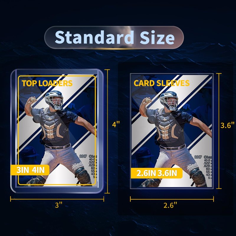 - ✅【DOUBLE PROTECTION】The top loaders prevent the cards from getting wet, fading, bending, or deforming, and bending, and the soft sleeves prevent the cards from scratching. This double protection ensures that your cards are pristine during long-term storage without the trouble of fading and scratching.