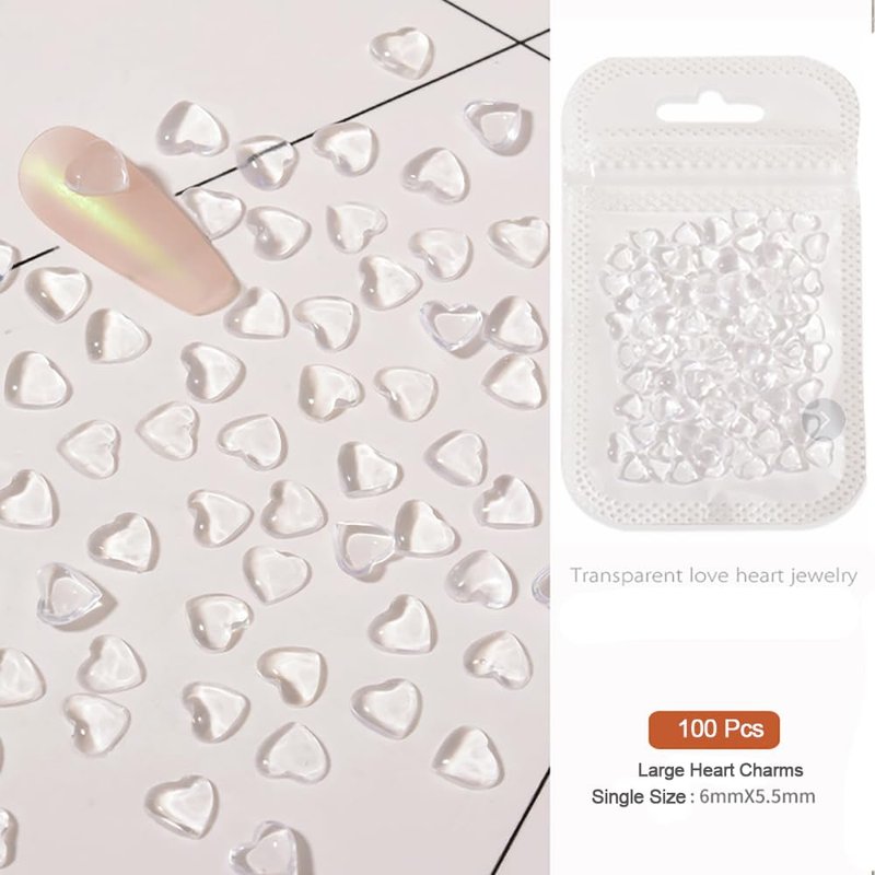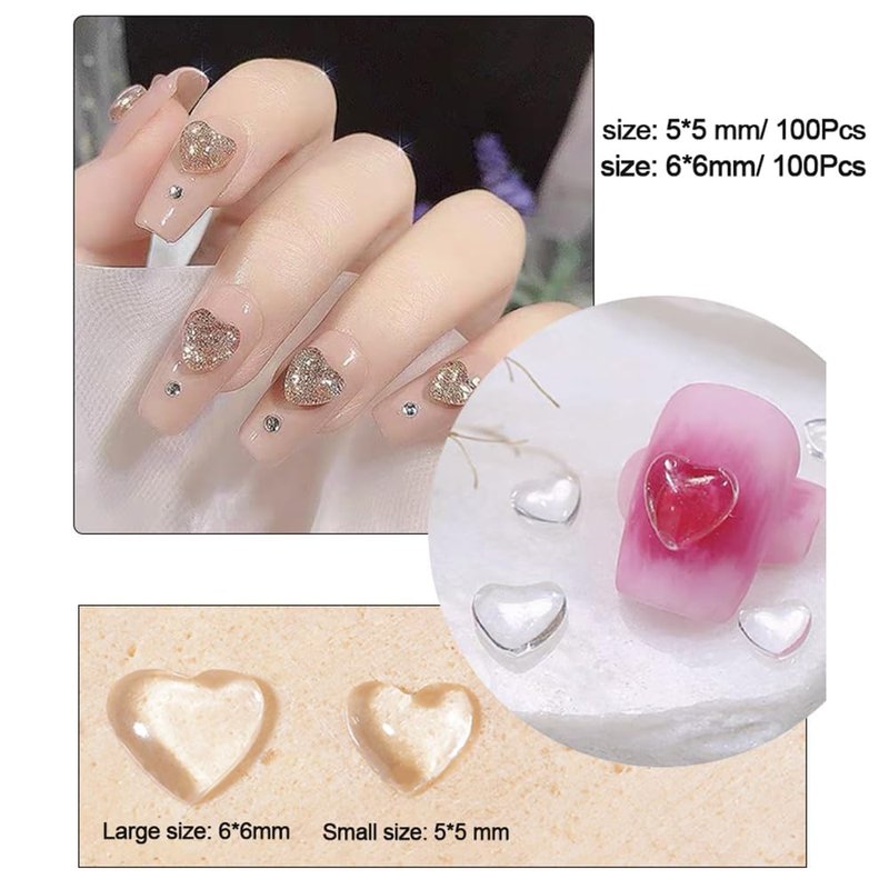 - [Clear Heart Nail Charms] You will get 2 bags of 200pcs (5mm*100/6mm*100) 3D heart shaped nail jewelry for DIY nail decoration.