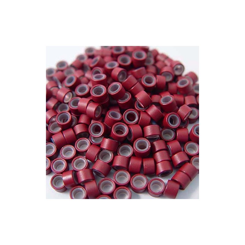 200 PCS 5mm Burgundy Red Color Silicone Lined Micro Rings Links Beads For I Bond Stick Tip Feather Hair Extensions