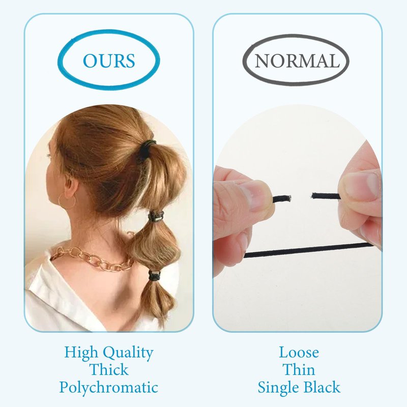 - Wide Application: Elastic hair ties for women and girls is suitable for different hair, such as thick hair, thin hair, curly hair and straight hair. These hair elastics for thick hair are soft and stretchy, making it easy to stretch and hold your hair while you work, play or go out, keeping your style all day long.
