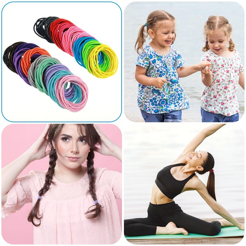 - Elastic Hair Ties: These no-metal hair elastics hair ties are made from high quality elastic material that is stronger and more durable. Easily stretch and secure your hair while you work, play or go out to maintain your style throughout the day; you can cut no damage ponytail holders off and create your own coverings for long-term use