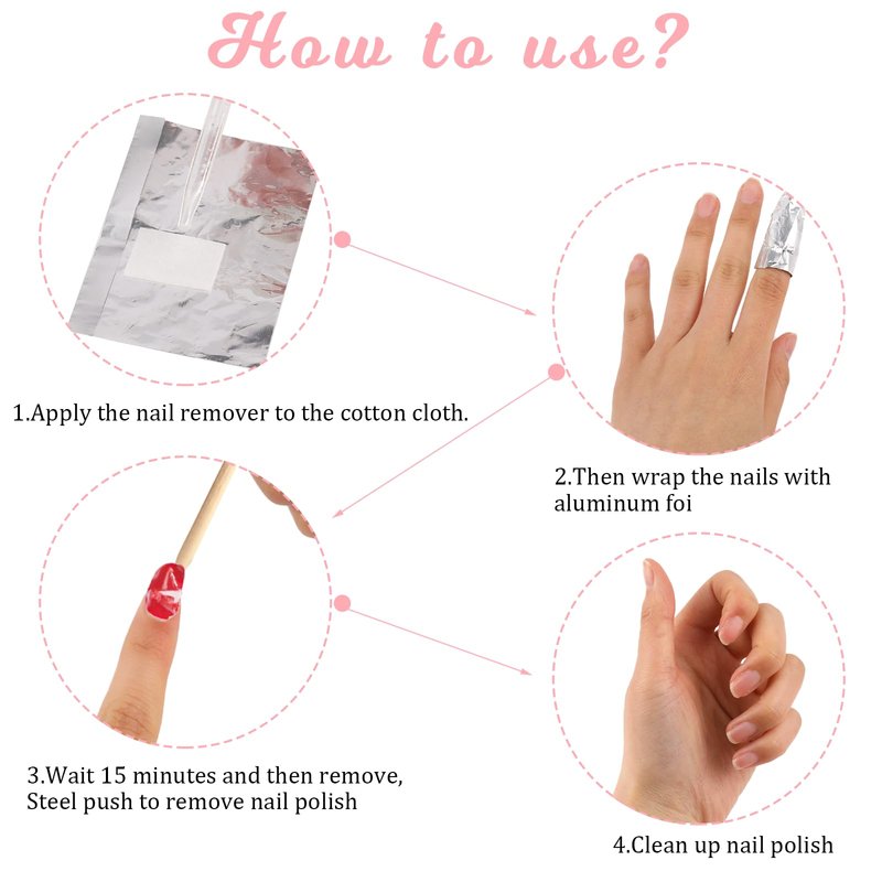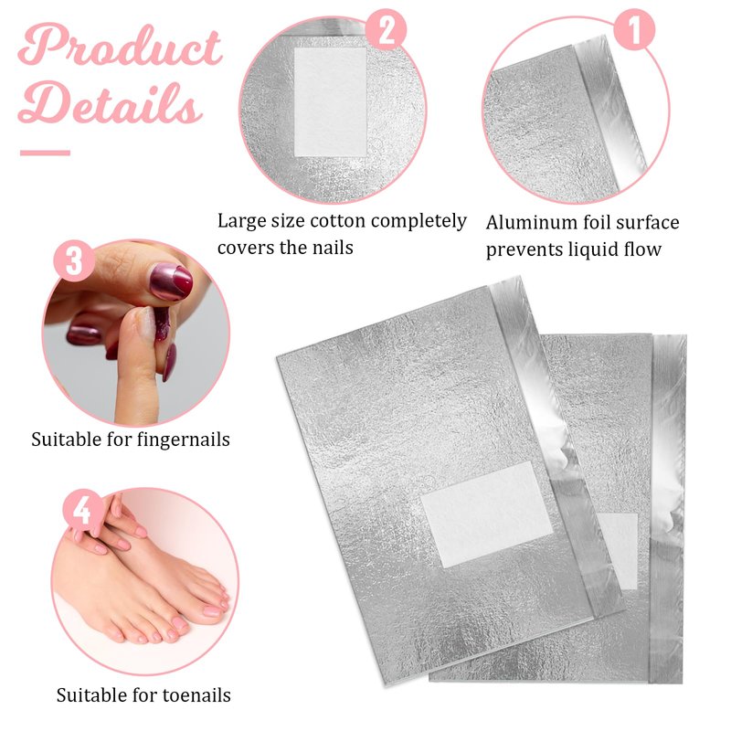 - Professional Salon Quality: Made from high-quality aluminum foil and cotton, our gel nail polish remover wraps are disposable, hygienic, and aesthetic. They efficiently remove acrylic polish and gel without harming your nails. Perfect for use in professional nail salons or for DIY nail polish removal at home, they guarantee a salon-quality experience.
