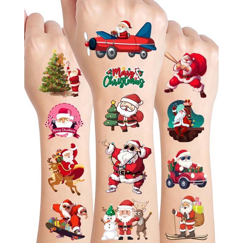 - Great fun for any Christmas party,These cute Santa tattoos could create a festive atmosphere to home,office,school and party site for your family,friends and schoolmates
