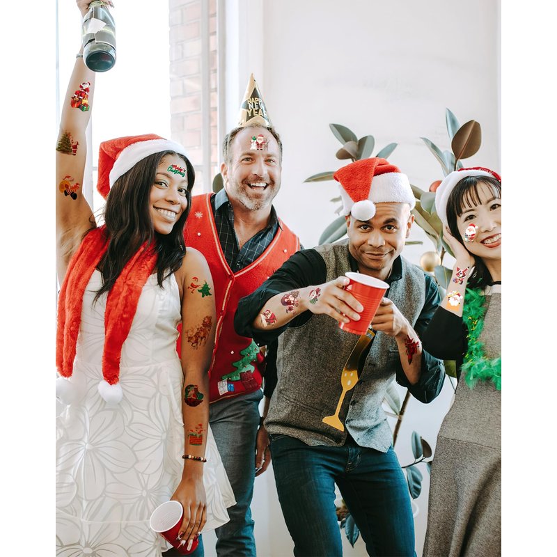 - Friendly to Skin Christmas party decorations,our temporary tattoos have been put through rigorous party testing and are 100% guaranteed to last all day,Non-toxic, harmless and tasteless, the tattoos do not cause irritation