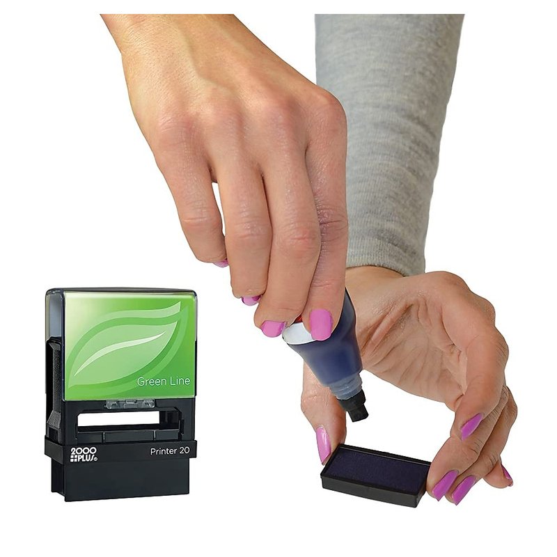 - Self-inking stamp made from 80% recycled post-consumer content. Stamp pad is built-in for years of use. CONFIDENTIAL. CONFIDENTIAL.