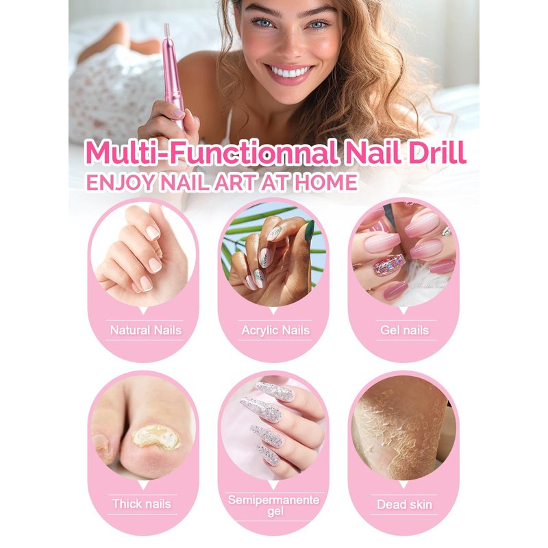 - Acrylic Nail Drill: Just a nail file drill meets all your needs, multifunctional use for nails prep, acrylic nails, gel nails, dip powder nails, thick nails, nail grinder, manicure & pedicure, callus removal, natural nails, routing, nail machine for acrylic nails, polishing, etc. Our nail drill ensures efficient and precise nail care for gel nails is the perfect choice for you