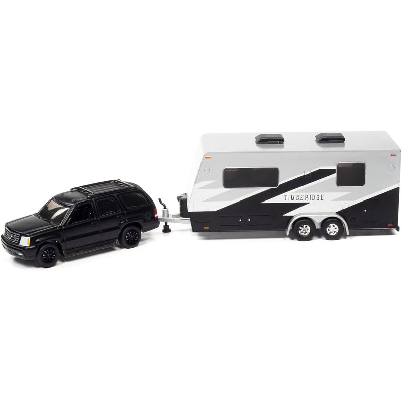 2005 Escalade Matt Black with Camper Trailer Limited Edition to 6012 Pieces Worldwide Truck and Trailer Series 1/64 Diecast Model Car by Johnny Lightning JLBT014-JLSP201B
