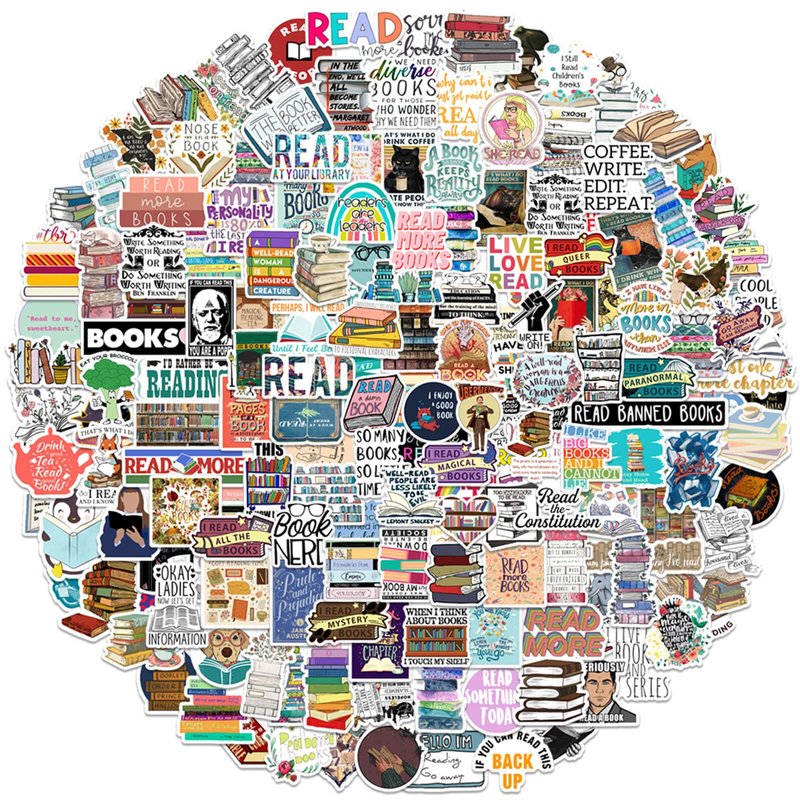 200PCS Bulk Book Stickers, Inspirational Reading Water Bottle Stickers for Kids Teens Students Teachers, Reading Lovers Book Accessories, Bookish Stickers, Vinyl Waterproof Decals