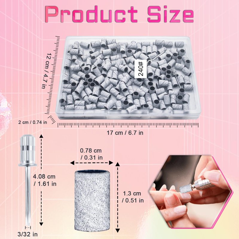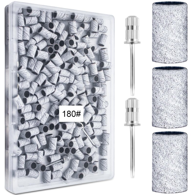 - 180GRIT NAILS SANDING BAND - You will get 200pcs 180grit zebra sanding bands and 2pcs sanding bit for nail drill. 3/32” Mandrel bits for electric nail drill are fit for most nail drill. The fine grit sanding bands & mandrel bit is a must have for any nail technician or beginners.