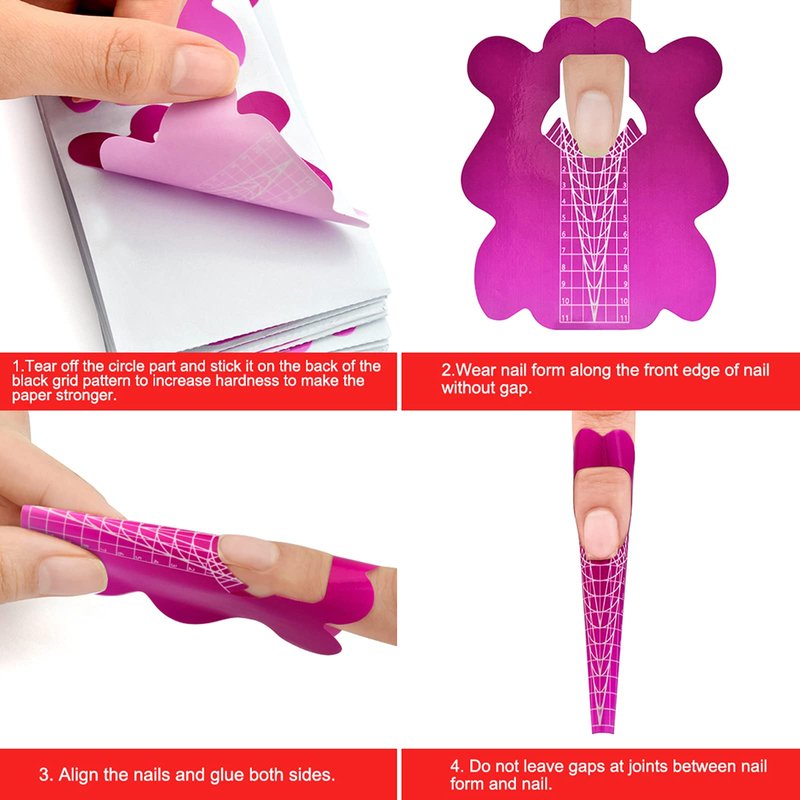- Application: Nail Extension Forms for Acrylic UV Gel False Nail Tips Extension, can Make Different Nail Shapes as You Wish, such as Stiletto, Square, Rhombus Nails.