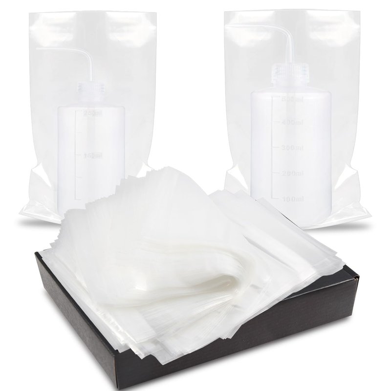- PACKAGES AND SIZE: The tattoo bottle bags size is 156*260mm(6.1 *10.2 inch), Fits wash bottles and most other bottle sizes. Comes with 200pcs wash bottle bags, these tattoo bottle covers are the ideal disposable tattoo supplies for tattoo artists.
