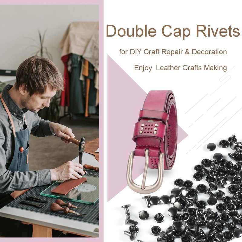 - [Quality Material]: Double cap rivets are made of nickel-free metal, the electroplating process makes their surface smooth, light weight, small size, sturdy and not easy to fall off and rust, can be used for a long time