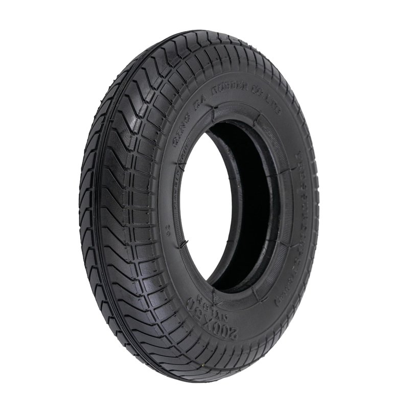 The 200x50 tire with street tread for the Razor A5 Air kick scooter is the rubber that you want when you put your A5 Air onto the concrete. The secret to this tire is its low-siped Street tread. Instead of a treadless slick or an aggressive knobby, the directional Street tread on this great little pneumatic tire provides the traction that you want on wet surfaces without the clunkiness of a dirt tire. As a directional tread tire, you should only mount it with the molded-on arrows facing forward, but you can use it on both the scooter's front or rear wheels.