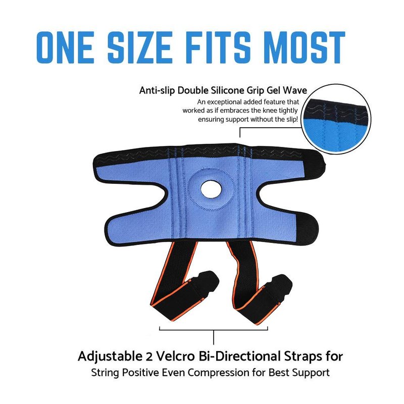 - Velcro designed strap - knee patella support strap It has a Velcro design strap that can be wrap around to any exterior part of the knee brace to firmly put it in place with the 2 Velcro straps that allows you to adjust the tightness in your own choosing and feel The support that’s best for you