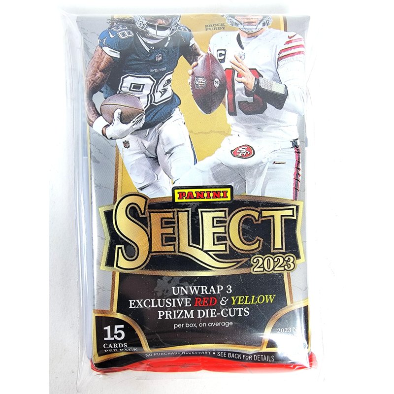 2023 Panini Select Football NFL Jumbo Cello Value Pack with 15 Trading Cards + Toploader! Hunt for Fat Pack Exclusive Red & Yellow Prizm Die-Cuts! Look for one autograph and one Zebra Prizm Die-Cut (1 in 12 chance, on average)! The scintillating Select Football franchise returns for the 2023 season with a three-tiered set that grows increasingly more rare with each tier. Also find a fantastic insert lineup that magnificently blends today and yesterday. Includes one toploader!