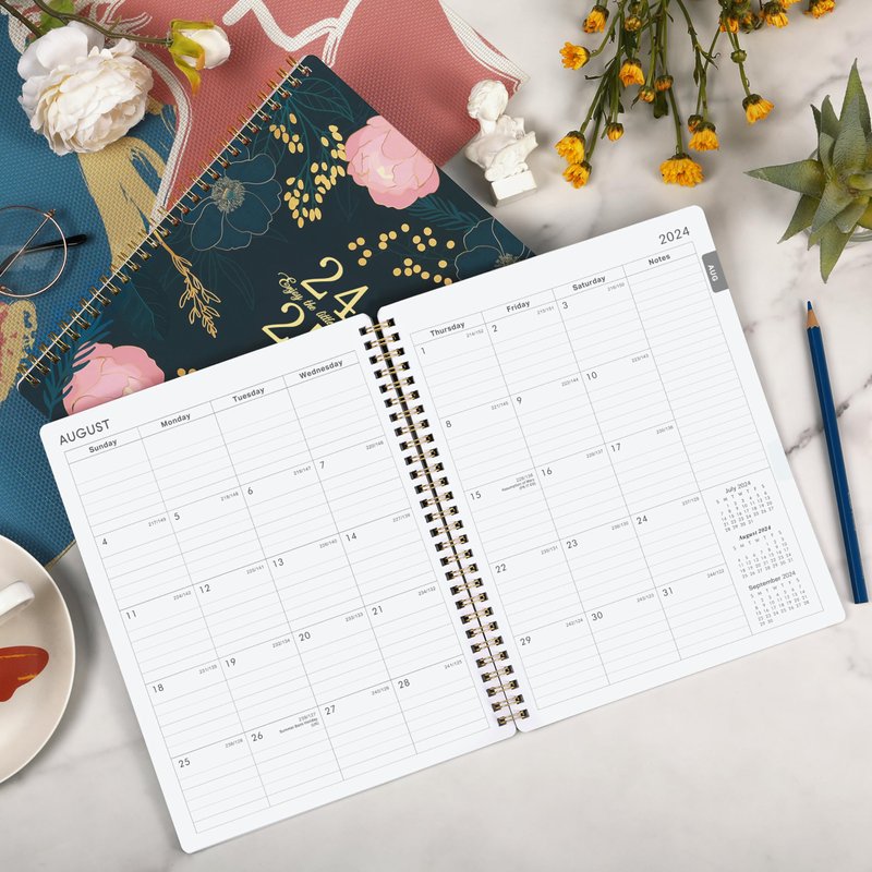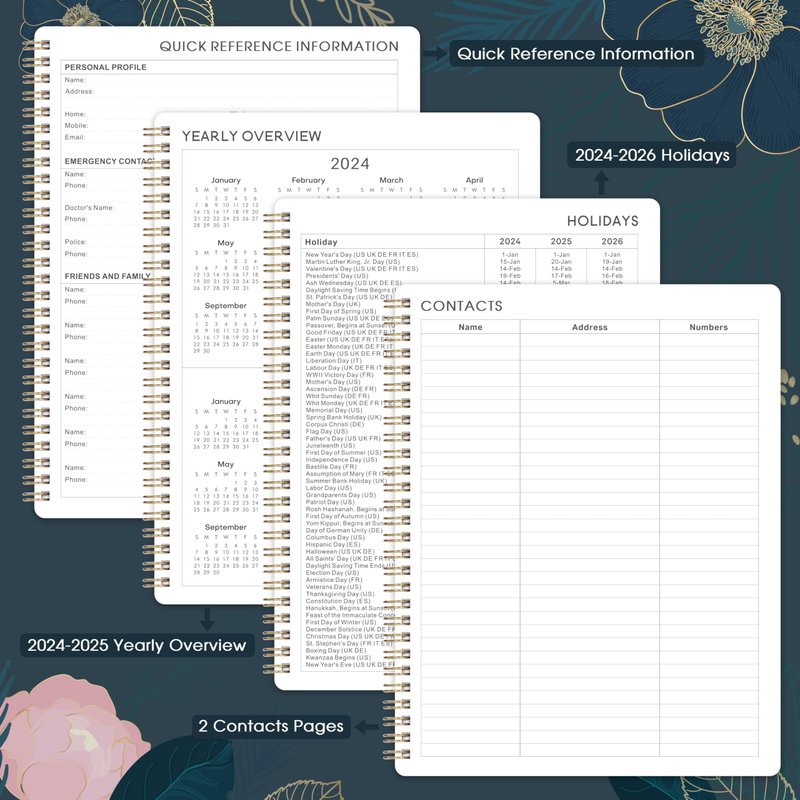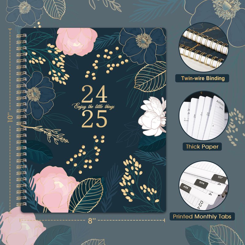 - 🌸Functional Details - 8" x 10" Weekly & Monthly Pages | Thicker Paper | Flexible Cover | Contacts | Quick Reference Information | Yearly Overview | Reference Calendars | Holidays | Julian Dates | Strong Twin-Wire Binding | Round Corner