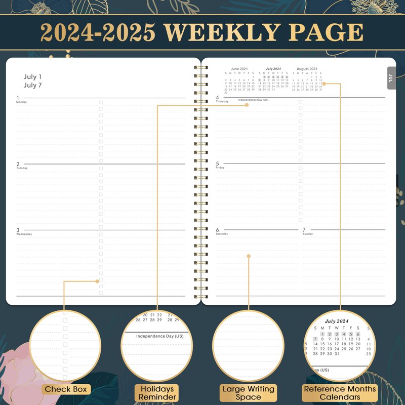 - 🌸2024-2025 Weekly Management - Each weekly page of this 2024-2025 planner has check boxes and ample lined writing space for your appointments, activities or events, etc. You can make a to-do list and tick off when you're done, which will keep you focused and work toward your goals.
