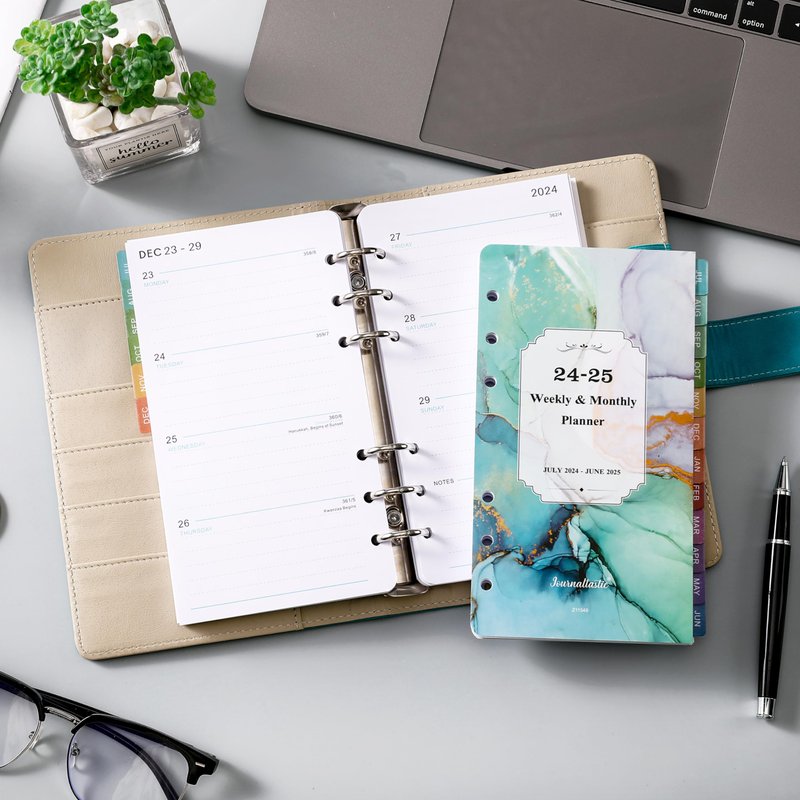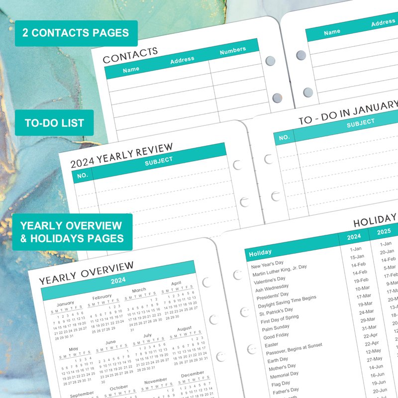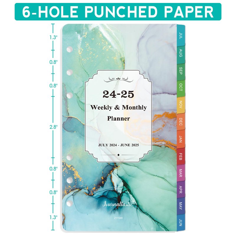 2024-2025 Planner Refills - Planner Refills 2024-2025, July 2024 - Jun 2025, A6 Planner Inserts 2024-2025, 3.75" x 6.75", 2024-2025 Weekly and Monthly Planner Refills, A6 Planner Refills, 6-Hole Punched - Green