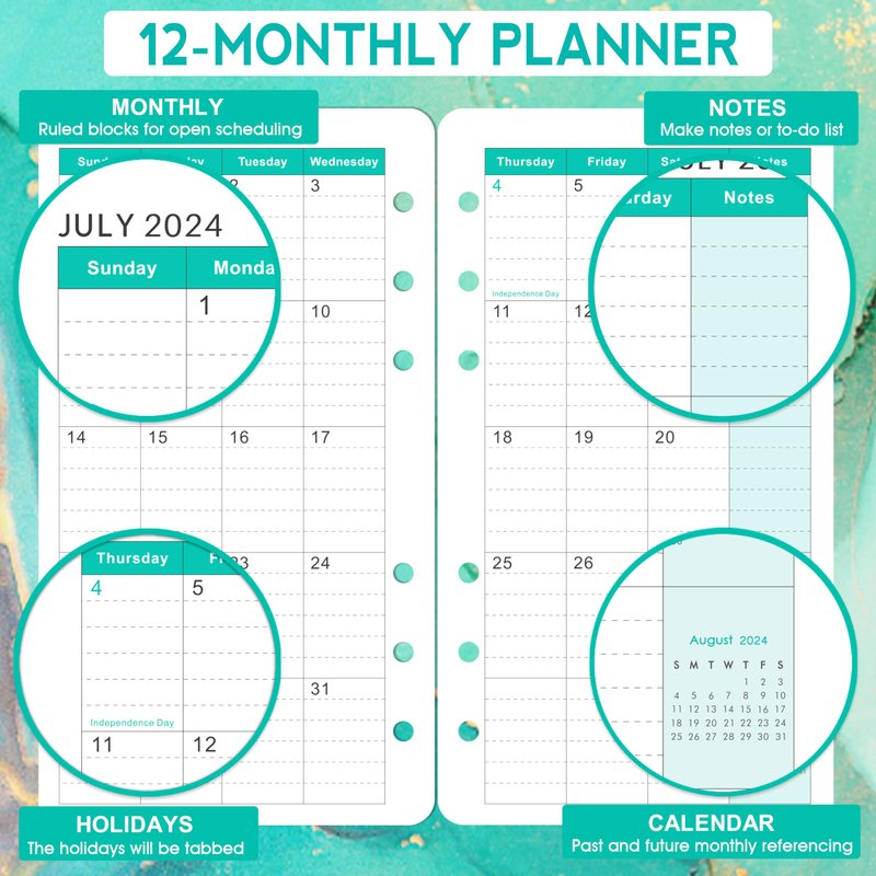 - 🌲 2024-2025 PLANNER REFILL - This 2024-2025 planner refill measures 3.75''x 6.75'' and features 12 months (JUL 2024 - JUN 2025) of weekly and monthly pages, weekly and monthly sections for easy full year planning and scheduling. Planner refill 2024-2025 is easy to use and carry away.